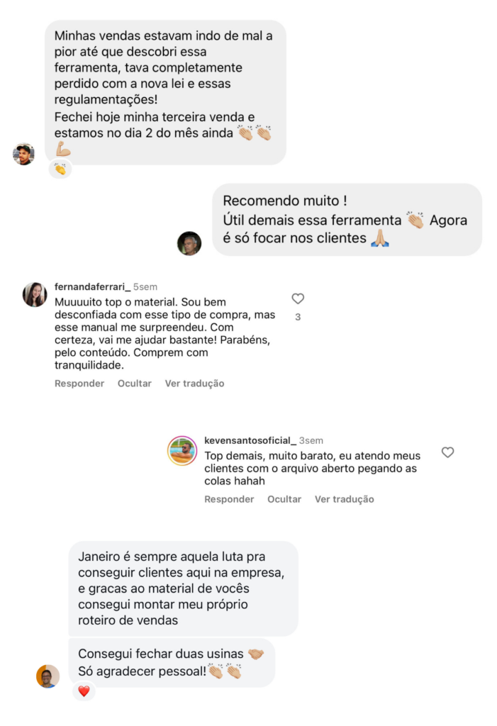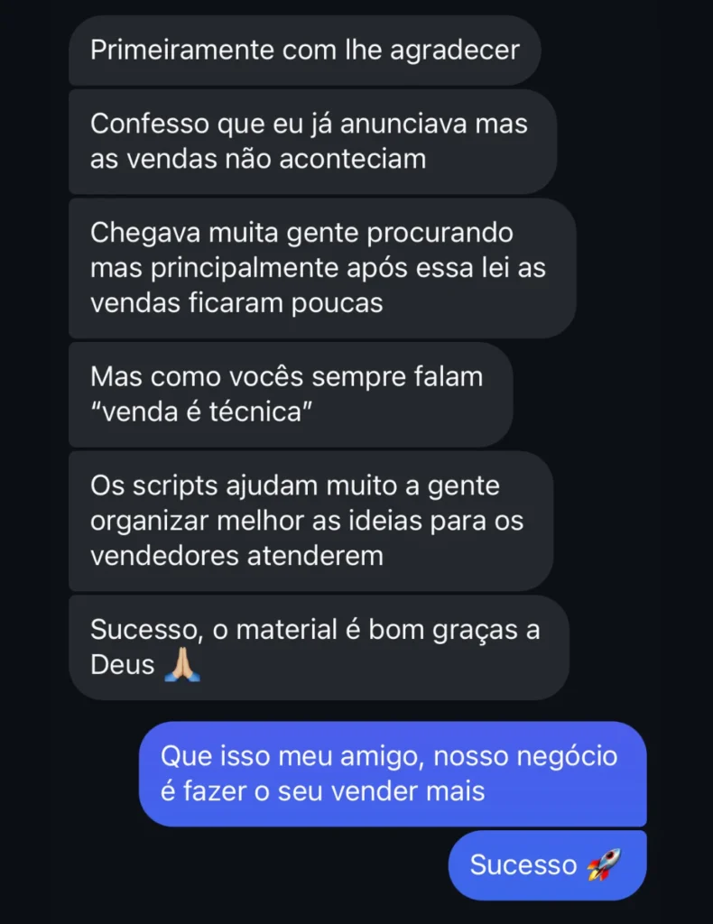 Enquanto seu faturamento fica travado pela falta de vendas, seus concorrentes já estão vendendo e podem tirar você do mercado. Quanto tempo mais o seu negócio suporta com os resultados que você tem hoje? Agilidade é essencial, por isso você precisa desses scripts o mais rápido possível para acelerar seus resultados.